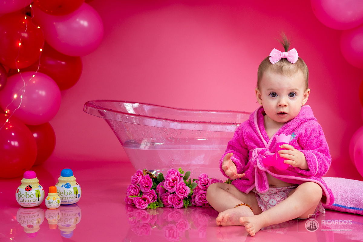 Dia de fotografar o Smash The Cake dessa princesinha linda! As fotos ficaram fofas, não acham? E adivinhem como terminou? Com um belo banho de banheira. É muito luxo! hehehe